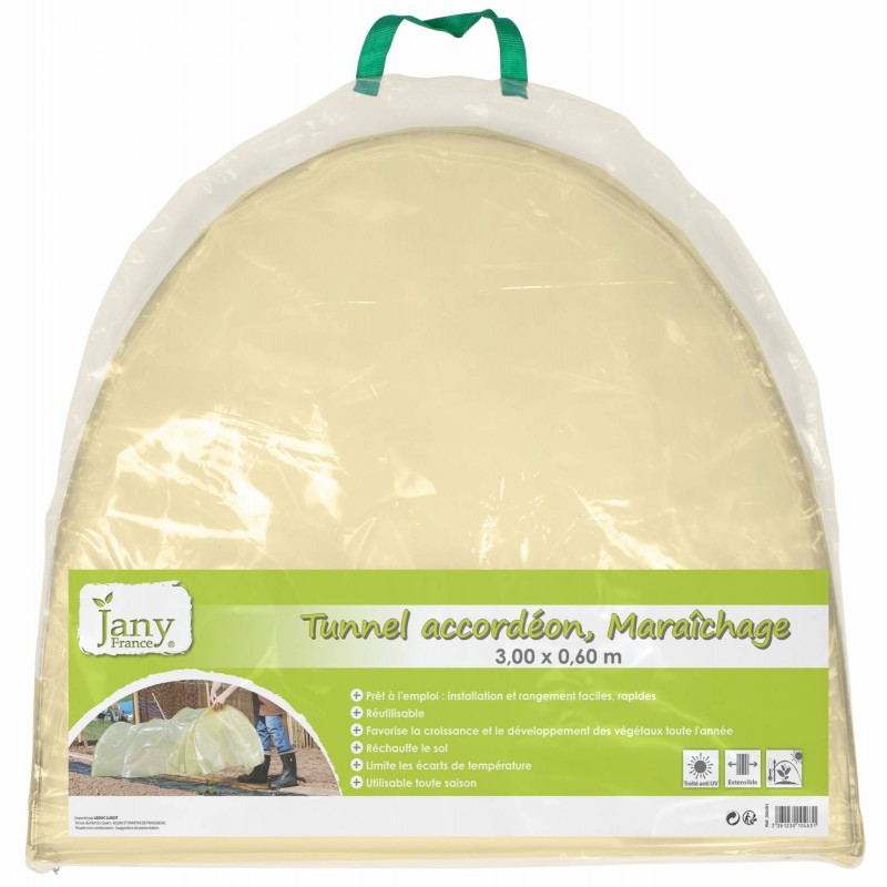 Tunnel accordeon maraichage +oeillets+ fixations 0.60X3M