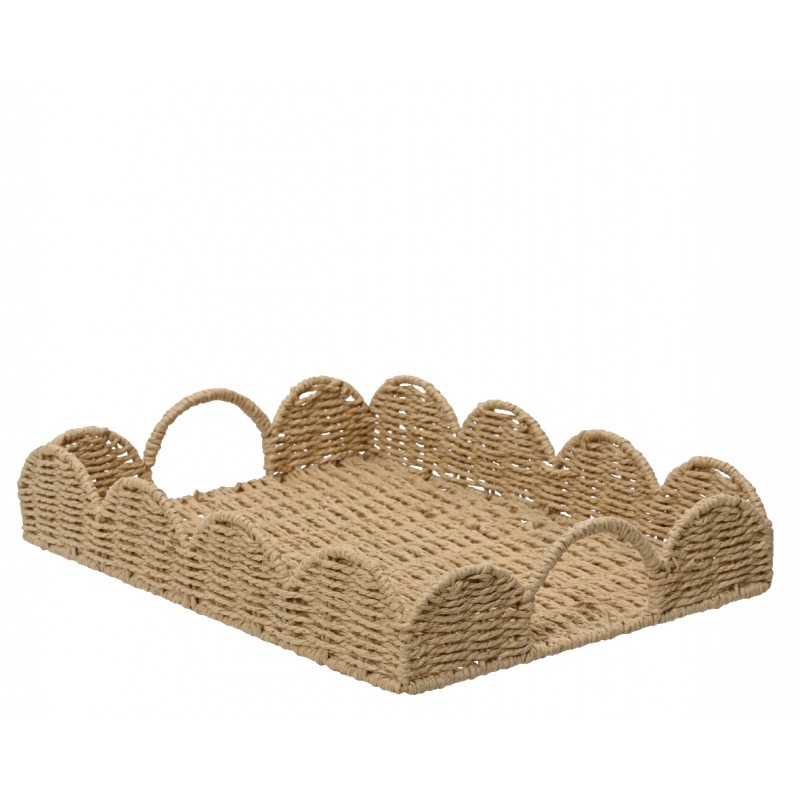 Plateau Dentelle Poignée Naturel En Corde De Papier 30X40-KAEMINGK