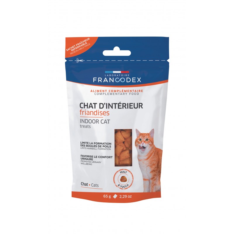Les FRIANDISES ANTI-BOULES DE POILS POUR CHATS FRANCODEX contiennent du malt et de l'inuline, afin de soutenir le transit intestinal et limiter la formation des boules de poils. De plus, la présence de DL-Méthionine et de canneberge favorise le confort urinaire, et la présence de Yucca diminue les mauvaises odeurs.