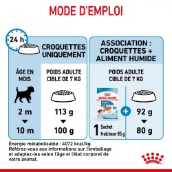 Aliment complet pour Chiots de taille Mini (poids adulte inférieur à 10 kg) jusqu'à 10 mois.