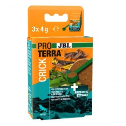 Amélioration de la valeur nutritive des insectes alimentaires destinés aux animaux de terrarium : aliment complet équilibré pour grillons et autres insectes. Utilisation simple : proposer du JBL PROTERRA CRICK environ 24 heures avant le nourrissage des insectes. Ingrédients précieux (minéraux, glucides, vitamines) pour remplir l'appareil digestif. Les insectes alimentaires sont souvent restés sans nourriture, ils présentent donc peu de valeur nutritive pour les animaux de terrarium. Nourris avec un aliment de qualité supérieure, leur valeur nutritive augmente de manière très importante.