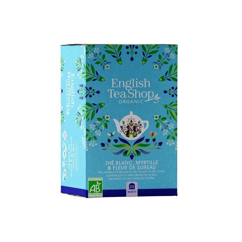 Ingrédients : thé blanc* (66%). citronnelle* (18%). fleurs de sureau* (10%). arôme naturel (5%). myrtille* (1%). (*) Ingrédients issus de l’agriculture biologique.