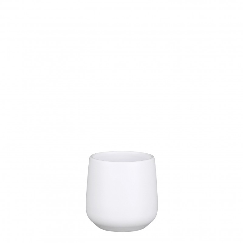 Cache-Pot Amber Rond Blanc Mat En Céramique H7-Ø8-MICA DECORATIONS