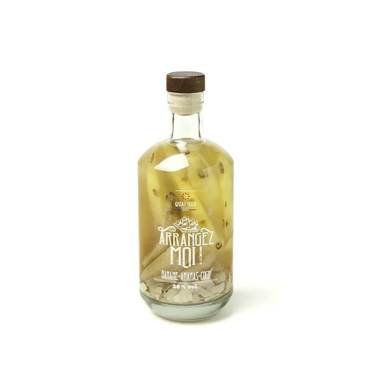 Découvrez notre rhum arrangé aux saveurs gourmandes qui vous transportent dans les îles C est un rhum blanc d exception que nous avons parfumé de larges tranches d ananas et de banane pour adoucir la puissance du rhum d une note fruitée. Quelques lamelles de coco agrémentent le tout de leur saveur suave… Délicieux A déguster pur ou façon ti punch les yeux fermés, pour se croire sous les cocotiers… Vous entendez la mer