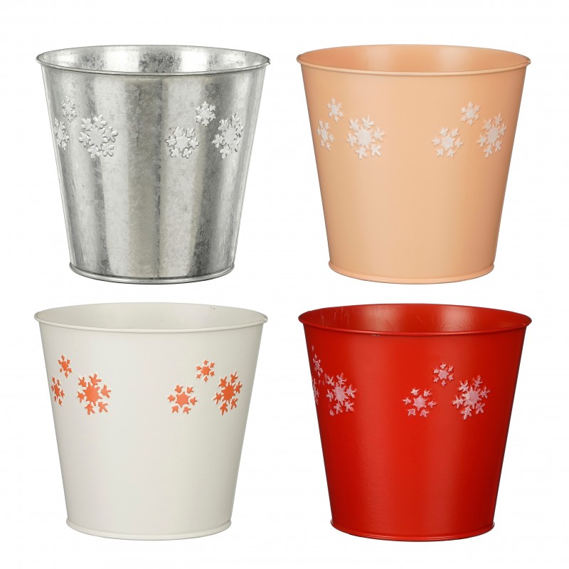 Cache-Pot Flocon Rouge/Blanc/Gris/Rose En Fer H15-Ø16-MICA DECORATIONS