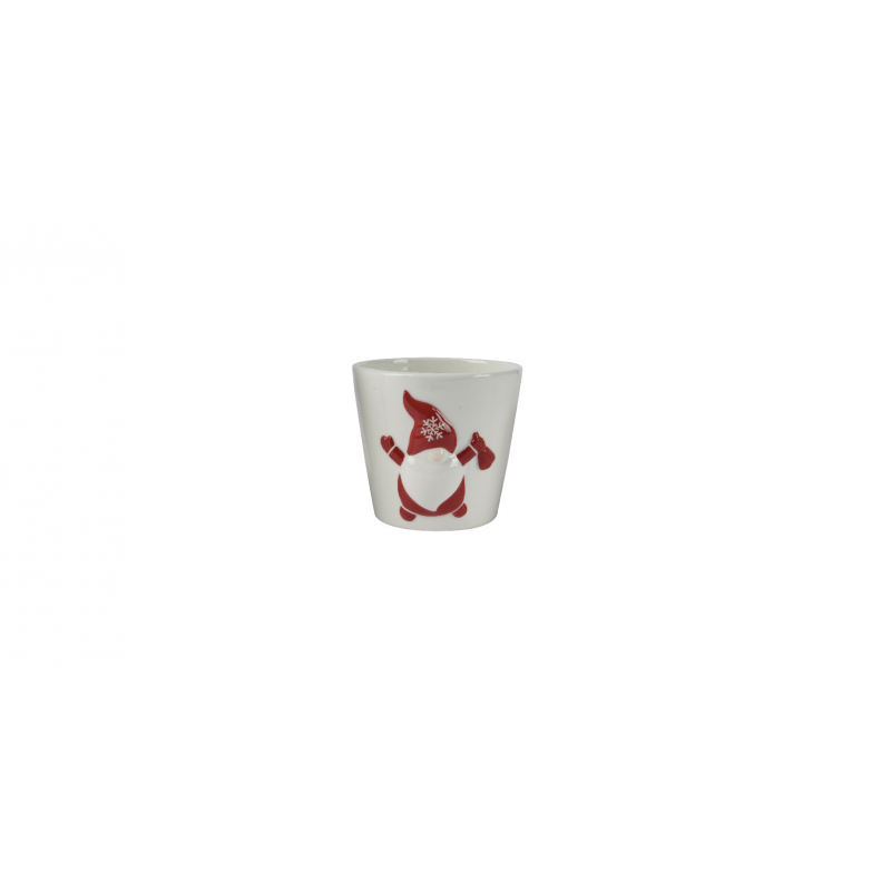 Cache-Pot Père-Noël Blanc Ø11-H10 En Dolomite-Vendu À La Pièce-DECORIS