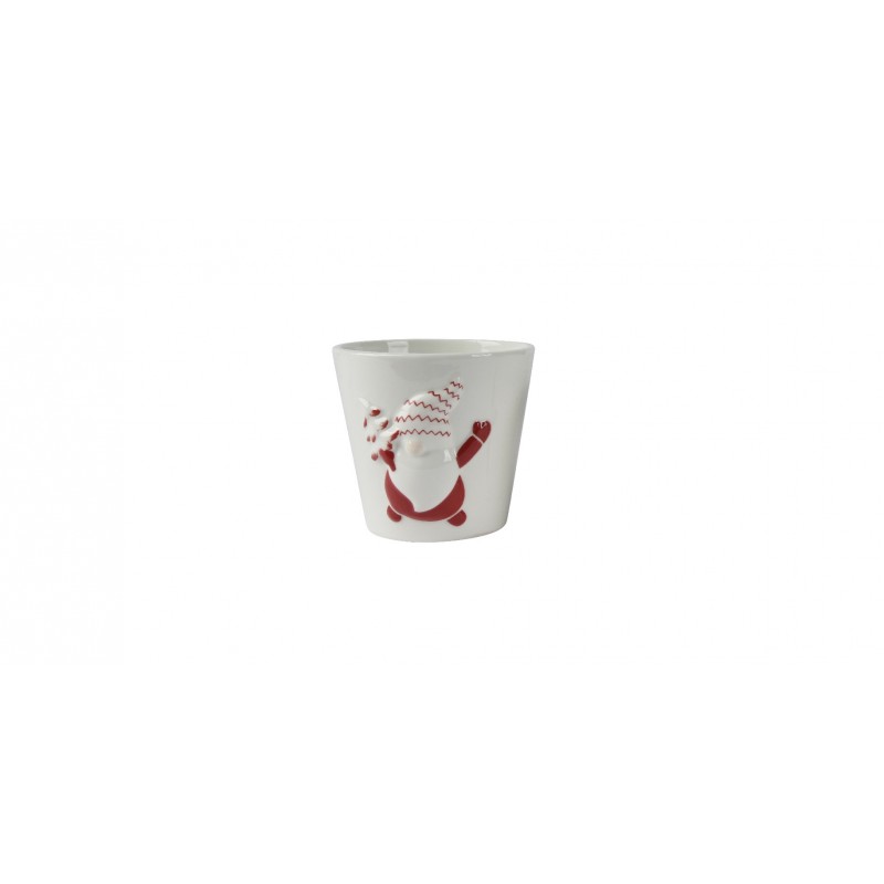 Cache-Pot Père-Noël Blanc Ø13-H12 En Dolomite-Vendu À La Pièce-DECORIS