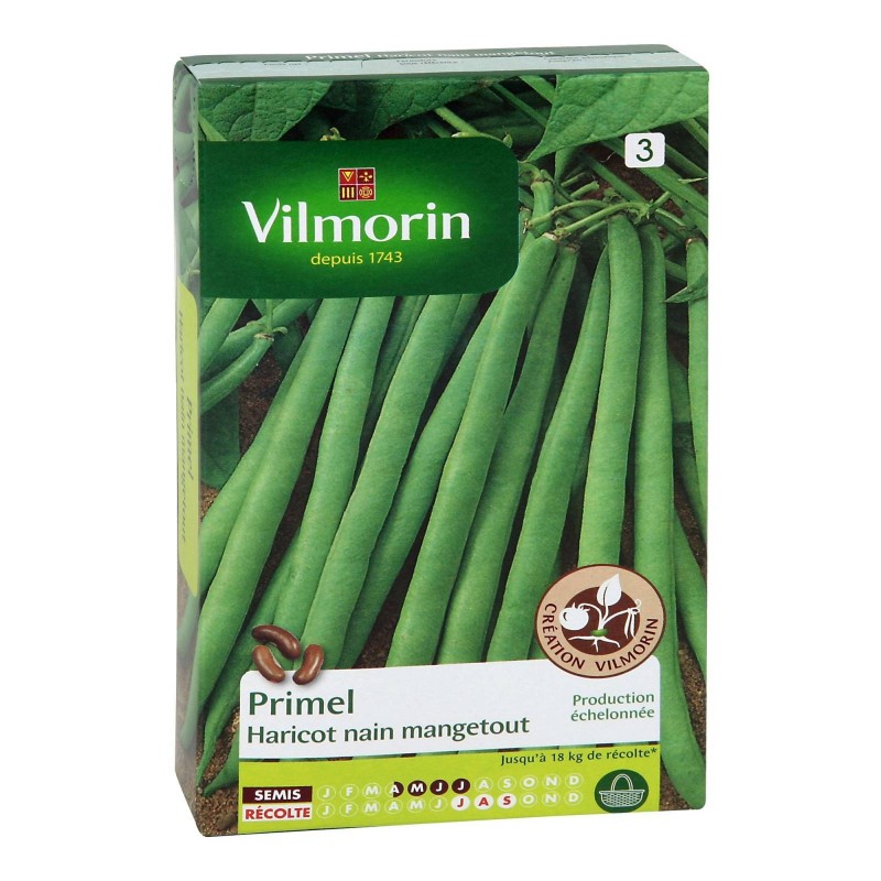 Précoce et extrêmement productif, Primel vous donnera des gousses vertes, longues et droites, très tendres, sans fil ni parchemin, qui se congèlent à merveille. Variété résistante aux maladies.