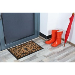En combinant des fibres grattantes en coco naturel et des moulures en caoutchouc le tapis paillasson CUBA 'volutes' d'ID Mat est redoutable contre la saleté. En plus d'être efficace contre la poussière, ce tapis brosse est également très déco grâce à son motif représentant des volutes très chic. Facile à nettoyer il vous suffira de le secouer à l'extérieur pour faire sortir la poussière et lui redonner toute son efficacité. Vous pourrez utiliser ce tapis paillasson à l'intérieur dans votre entrée ou votre garage ou à l'extérieur s'il est abrité de la pluie. Pour des performances optimales, nous vous conseillons d'associer votre tapis paillasson grattant avec un tapis d'entrée absorbant qui retiendra l'humidité.