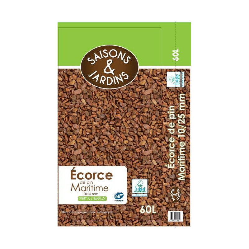 Écorce de pin maritime 10/25MM prêt à l'emploi ÉCOLABEL Sac 60L SAISONS&JARDINS