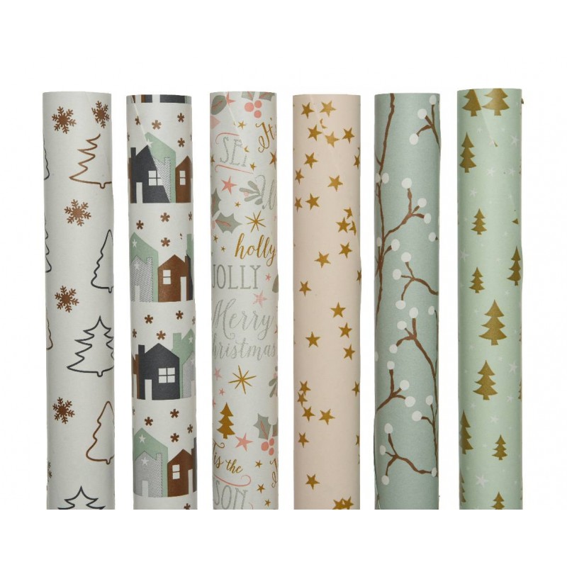 Papier cadeau papier - 2x sapins- etoile- 2x branches- houses 6ass