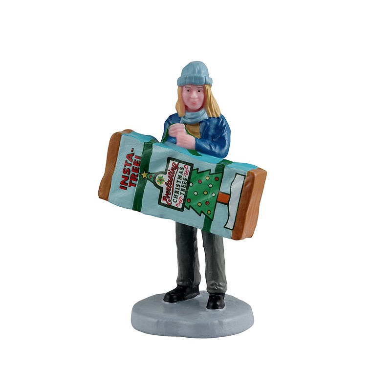 Une jeune fille joyeuse se promène dans la neige, portant dans ses bras une boîte contenant un sapin de Noël instagrammable. L'esprit de Noël l'entoure et elle apporte la joie des fêtes partout où elle va.