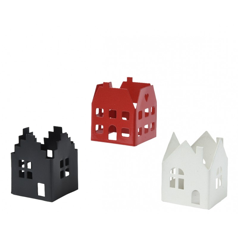Photophore Maison Vert/Blanc/Noir 4X4 En Fer-Vendu À La Pièce-DECORIS