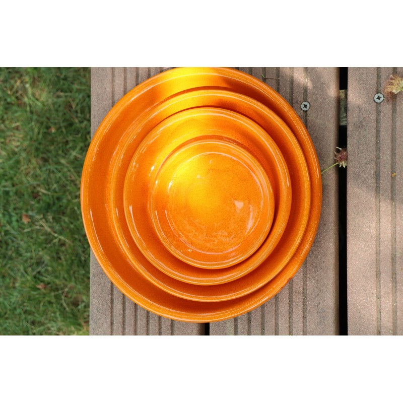 Soucoupe en terre cuite émaillée, fabriqué en France à la main. Idéal pour la croissance de vos plantes et pour la décoration de vos maisons. A protéger du gel.