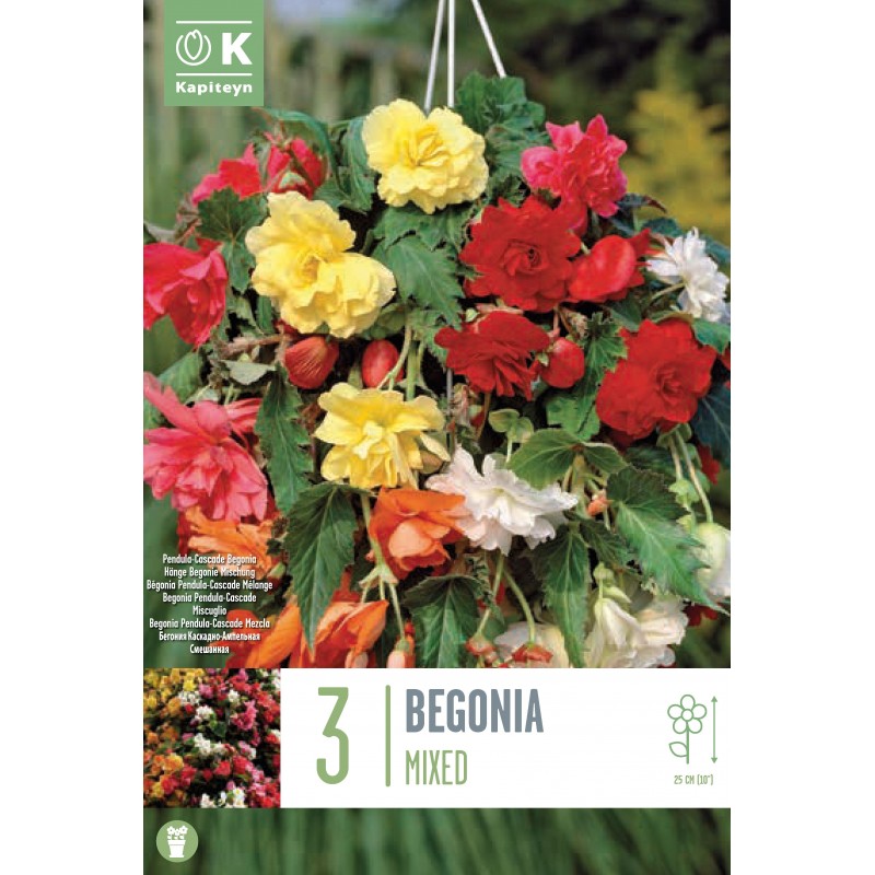 Le Begonia Pendula cascade a une habitude pendante qui les rend très adaptées aux pots et aux paniers de ferme. Elle est livrée avec de grandes et petites fleurs et est disponible en plusieurs couleurs: rose, jaune, rouge, orange et blanc. Elle est également disponible en petits fleurs et aux fleurs de grande envergure et à simple ou double fleurs.
