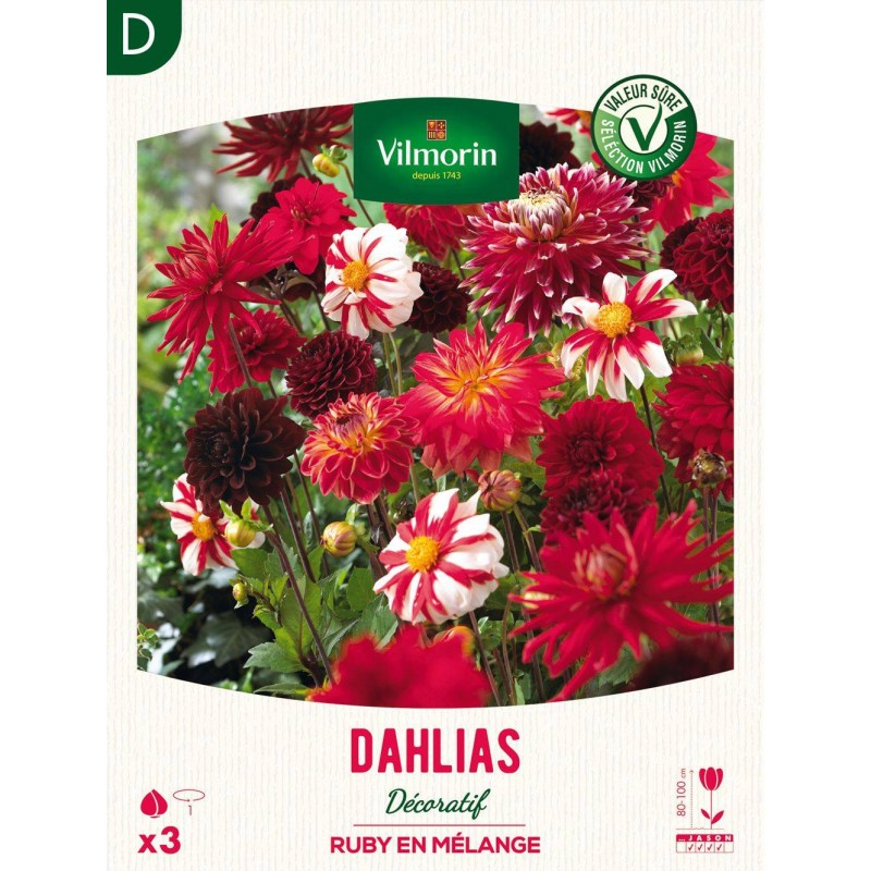 Le mélange de Dahlia Décoratifs RUBY avec son assortiment de fleurs aux couleurs flamboyantes est idéal pour apporter structure et volume aux massifs. bordures mais également bouquets.