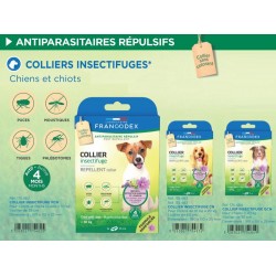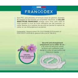 Sans PVC, sans phtalates et formulé à base d'extraits de margosa, de géraniol et de lavandin aux propriétés répulsives, le COLLIER INSECTIFUGE FRANCODEX protège votre chien pendant 4 mois de toute infestation par des parasites. Collier de 72cm.