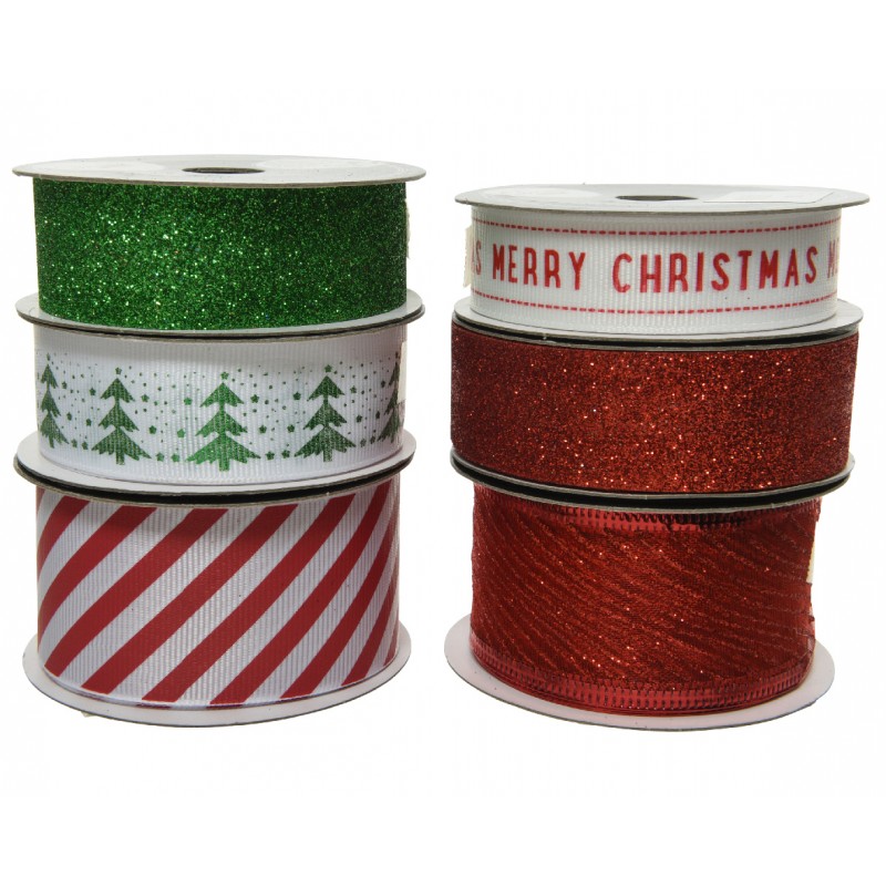 Ruban Merry Christmas Assortie 2.5X700 En Polyester-Vendu À La Pièce-DECORIS