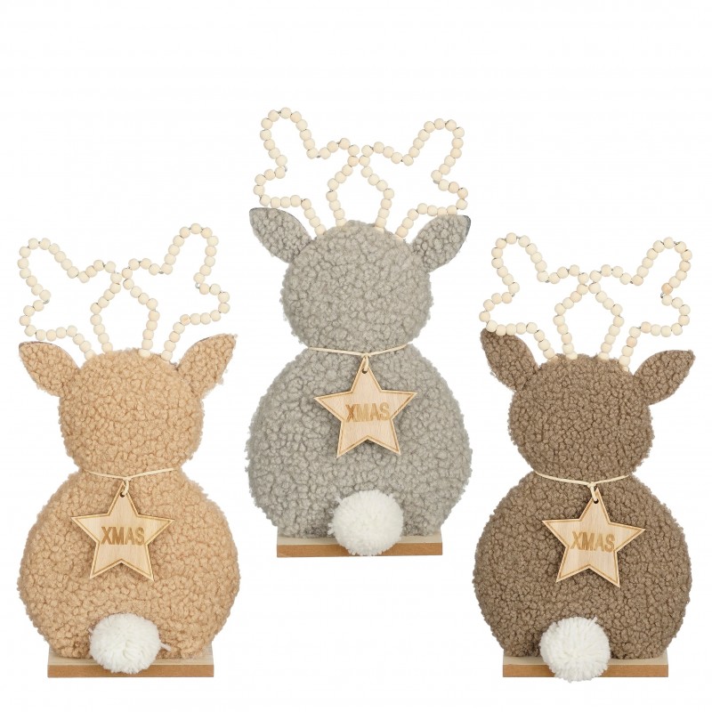Decoration cerf marron f. gris marron cl. 3 assorti FSC 100% - l19,5xb6xh40,5cm