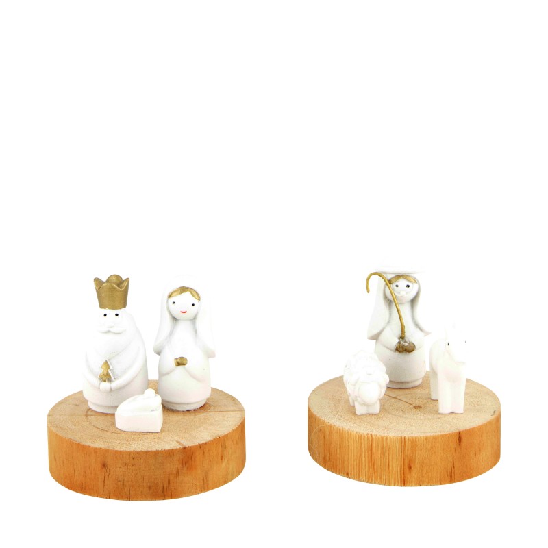 Scène Nativité Sur Socle Naturel/Blanc En Bois/Céramique 8X8X7.5-Vendu À L'Unité-DIJK