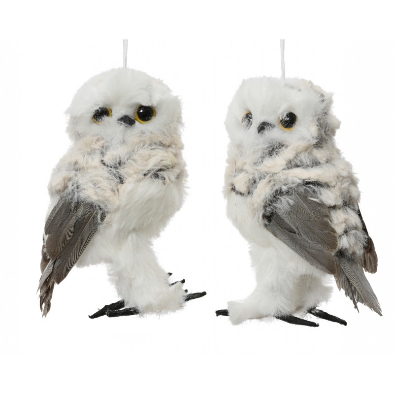 Hibou Fourrure À Suspendre Gris En Fausse Fourrure H13 - Vendu À La Pièce-DECORIS