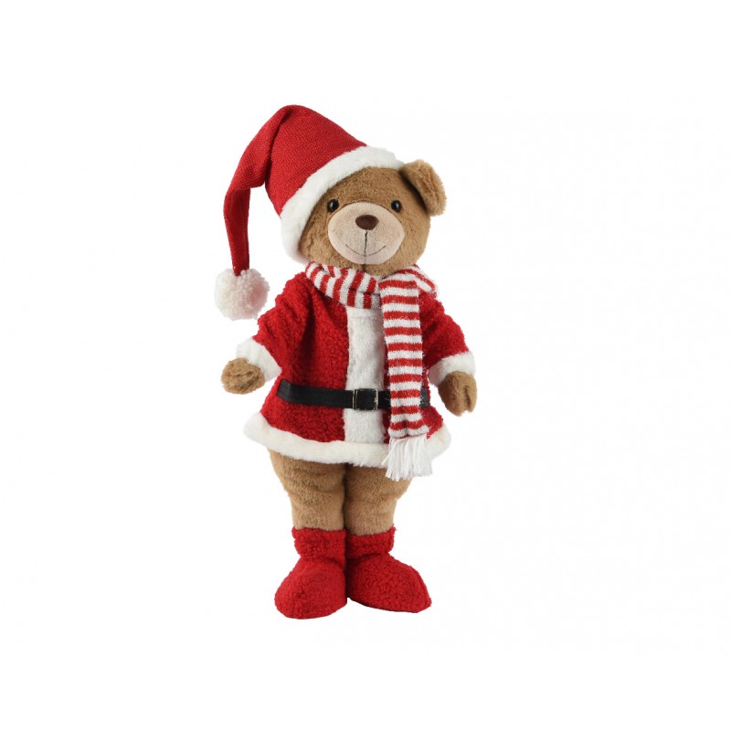 Ours Père Noël Rouge En Polyester H60 - Vendu À La Pièce-DECORIS