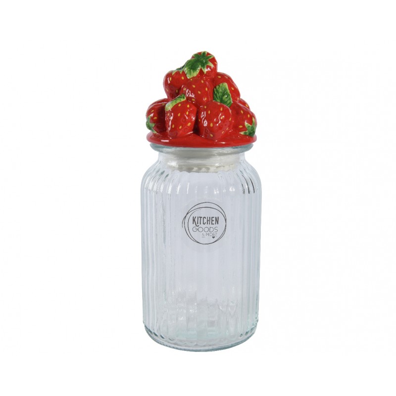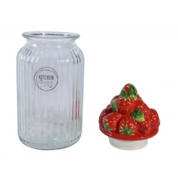Bocal Couvercle Fraise Rouge En Verre H26-KAEMINGK